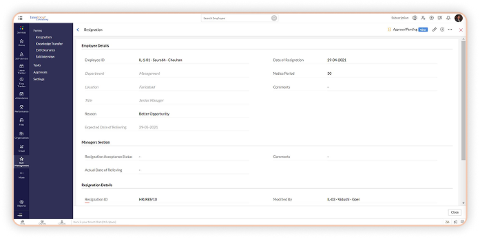 4.Post-approval the new department starts reflecting automatically. And the transfer letter is issued to the employee with details.
