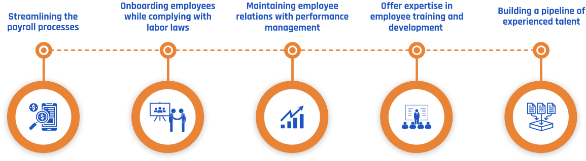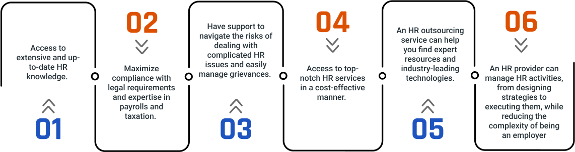 Outsourcing HR operations can benefit the business by streamlining HR services to ensure smooth operations. Further, this helps align the policies and processes with the company goals and local laws.