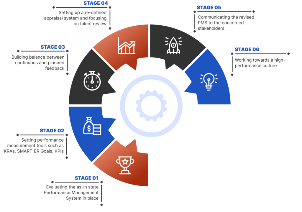 Existing performance management tools such as KRAs, Goals, and KPIs set at the beginning of the year, goals cascading mechanisms, performance rating/ranking communicated to the employees, mid-year/Annual Reviews, and feedback in light of the goals.